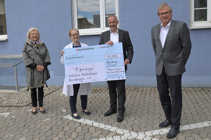 Die Feier zu seinem 50. Geburtstag im März 2020 musste Markus Kugler coronabedingt absagen. Zu Geldgeschenken sagte der Geschäftsführer der Feser, Graf & Co. Automobil Holding GmbH in Nürnberg trotzdem nicht Nein. Doch die Spenden waren nicht für ihn selbst bestimmt, sondern für sterbenskranke Kinder und ihre Familien: „Ich persönlich habe auf Geschenke verzichtet und stattdessen um Unterstützung für den Verein Tigerauge gebeten, der die Kinderpalliativversorgung in Erlangen schon sehr lange unterstützt“, erklärte Markus Kugler bei der Spendenübergabe. Auf diese Idee kam er durch das Schicksal eines sehr guten Freundes. Dieser hatte „Tigerauge: Initiative Kinderhospiz Nordbayern e. V.“ bereits seit vielen Jahren unterstützt, als 2019 seine eigene Tochter schwer erkrankte und vom Kinderpalliativteam des Universitätsklinikums Erlangen betreut werden musste – bis sie im Herbst 2019 an einem Hirntumor starb. Nun überreichten Markus Kugler und Gesellschafter Uwe Feser als Vertreter der Uwe-Feser-Kinderstiftung die „Geburtstagsspende“ in Höhe von 12.000 Euro. Dr. Dorothea Hobeck, Vorsitzende des Vereins Tigerauge, freute sich sehr. Mit ihrem Verein fördert Dr. Hobeck kontinuierlich die Arbeit des Kinderpalliativteams.