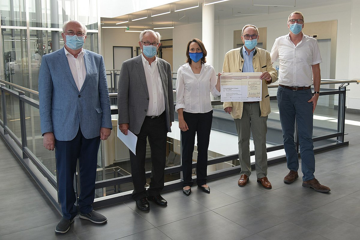 Die Manfred-Roth-Stiftung unterstützt ein Forschungsvorhaben von PD Dr. Silvia Spörl und ihren Kollegen der Medizinischen Klinik 5 – Hämatologie und Internistische Onkologie (Direktor: Prof. Dr. Andreas Mackensen) des Universitätsklinikums Erlangen. Das Projekt widmet sich der medikamentösen Beeinflussung der T-Zell-Antwort nach allogener Stammzelltransplantation. Dabei stammen die Zellen von einer anderen passenden Person. Den Spendenscheck über 15.000 Euro übergaben Dr. Wilhelm Polster und Klaus Teichmann von der Manfred-Roth-Stiftung zusammen mit Prof. Dr. Werner G. Daniel von der Forschungsstiftung Medizin an Dr. Spörl und Prof. Mackensen. Die Summe wird durch das Matching-Funds-Programm der Forschungsstiftung Medizin am Uni-Klinikum Erlangen auf insgesamt 20.250 Euro aufgestockt.