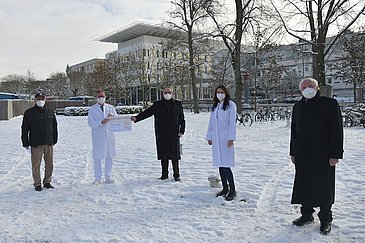 Prof. Dr. Dr. h. c. Raymund E. Horch, Direktor der Plastisch- und Handchirurgischen Klinik des Universitätsklinikums Erlangen, und seine Mitarbeiterin Dr. Theresa Hauck haben von der Manfred-Roth-Stiftung, vertreten durch Vorstandsvorsitzenden Dr. Wilhelm Polster und Stiftungsratsmitglied Klaus Teichmann, einen Spendenscheck in Höhe von 30.000 Euro entgegengenommen. Im Rahmen ihres Matching-Funds-Programms erhöht die Forschungsstiftung Medizin (Vorstandsvorsitzender: Prof. Dr. Werner G. Daniel) am Uni-Klinikum Erlangen den Betrag auf insgesamt 40.500 Euro. Das Geld fließt in das Projekt „Der Einfluss von Bestrahlung und Lipotransfer auf das Mammakarzinom“. Dabei untersucht Dr. Hauck zusammen mit ihrer Kollegin PD Dr. Kengelbach-Weigand und weiteren Mitarbeiterinnen, inwieweit die Bestrahlung und die Eigenfett-Transplantation im Rahmen einer brusterhaltenden Therapie das komplexe Zusammenspiel unterschiedlicher Zelltypen im Brustkrebsgewebe beeinflusst.
