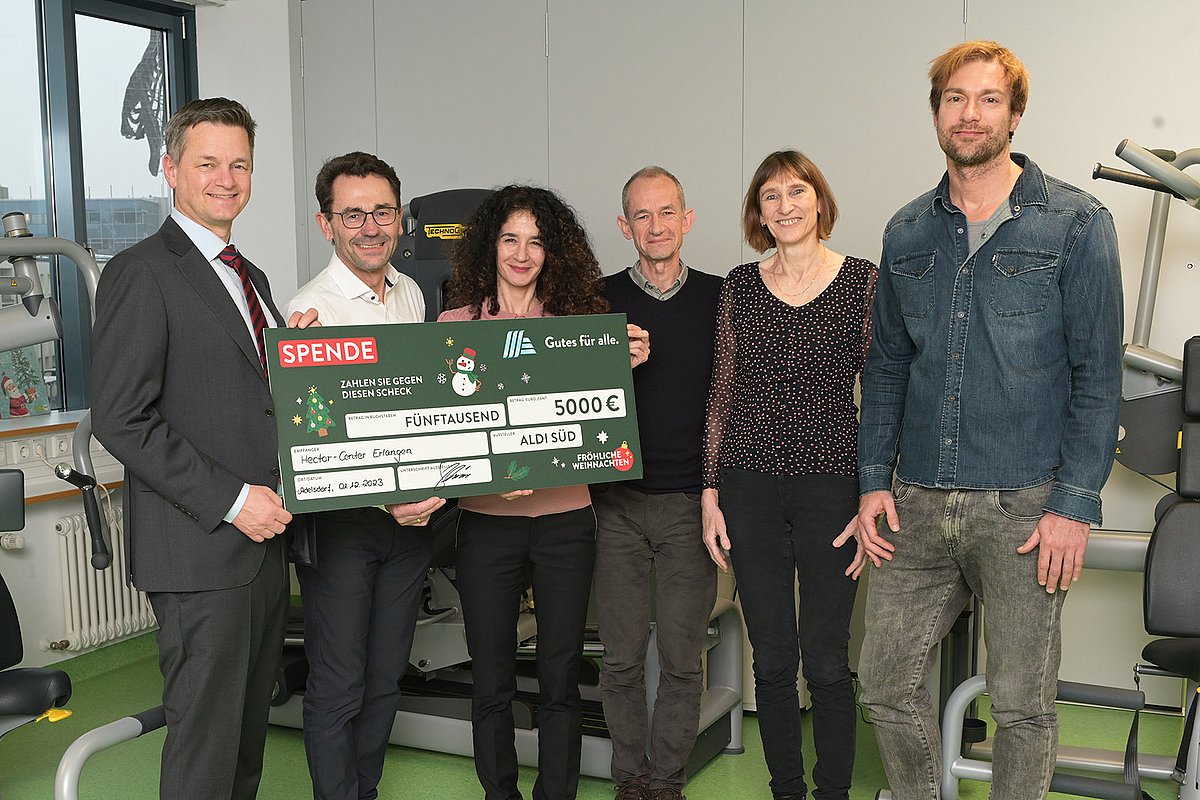 Das Hector-Center für Ernährung, Bewegung und Sport des Uniklinikums Erlangen behandelt Krebskranke mit innovativen und ganzheitlichen ernährungs- und sportmedizinischen Therapiekonzepten. Dieser Ansatz fördert den Erfolg der Krebsbehandlung und die Lebensqualität der Patientinnen und Patienten. Aus diesem Grund übergab Markus Steinbrenner, Managing Director bei ALDI SÜD, im Rahmen einer Weihnachtsspendenaktion einen Spendenscheck in Höhe von 5.000 Euro an Prof. Dr. Yurdagül Zopf, Leiterin des Hector-Centers, und ihr Team. Die Forschungsstiftung Medizin am Uniklinikum Erlangen, vertreten durch ihren Vorsitzenden Prof. Dr. Stephan Achenbach, stockte die Spende im Rahmen des Matching-Funds-Programms auf insgesamt 6.750 Euro auf.