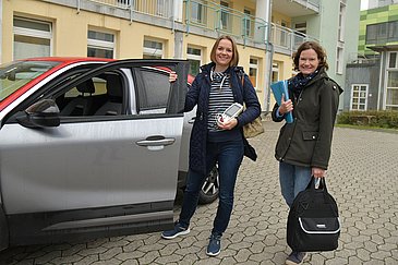 Anfangs kam Barbara Toka mindestens einmal wöchentlich zum Hausbesuch, beurteilte Ninas Atemmuster und ihre Sauerstoffsättigung und beobachtete, wie die Eltern mit ihrer Tochter umgingen: Kommen sie mit dem Füttern und Wickeln trotz all der Beatmungsschläuche und -kabel gut zurecht? Kennen sie alle Medikamente und wissen, wie sie zu verabreichen sind? Verstehen sie die Werte auf dem Überwachungsmonitor? Wissen sie, wie sie Ninas Oberkörper lagern können, um ihr das Atmen zu erleichtern? Außerdem ging es der Pflegefachkraft darum, die Mutter zu entlasten, während ihr Mann arbeiten musste. „Wir haben zu zweit geübt, die Kabel der Heimbeatmung umzustecken, um dann mit der mobilen Sauerstoffversorgung das Haus verlassen zu können“, erklärt Barbara Toka. Sie begleitete Sarah Kirchner beispielsweise zu Arztterminen und ins Sozialpädiatrische Zentrum des Uniklinikums Erlangen, in dem Nina weiterbehandelt wird, und schrieb der jungen Frau eine Checkliste mit allen Dingen, die in die Notfalltasche für unterwegs gehören.