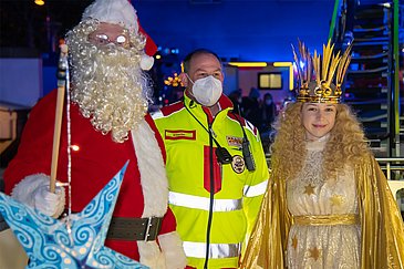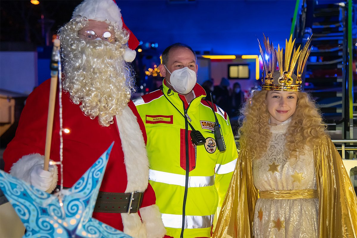 „Wow, der Weihnachtsmann kommt mit der Feuerwehr!“ und „Schau mal, die Autos leuchten alle!“: So hörte man Kinder und Jugendliche von den Balkonen der Kinder- und Jugendklinik (Direktor: Prof. Dr. Joachim Wölfle) des Universitätsklinikums Erlangen rufen, als die Rettungsdienste der Stadt Erlangen gesammelt angefahren kamen. Drei Tage vor Heiligabend haben sie sich auf den Weg gemacht, um Patientinnen und Patienten sowie Mitarbeitenden des Uni-Klinikums Erlangen eine weihnachtliche Freude zu bereiten. Unterstützt wurden sie dabei vom Weihnachtsmann alias Prof. Dr. Stephan Eitner, leitender Oberarzt der Zahnklinik 2 – Zahnärztliche Prothetik des Uni-Klinikums Erlangen, sowie dem Nürnberger Christkind Teresa Windschall.
