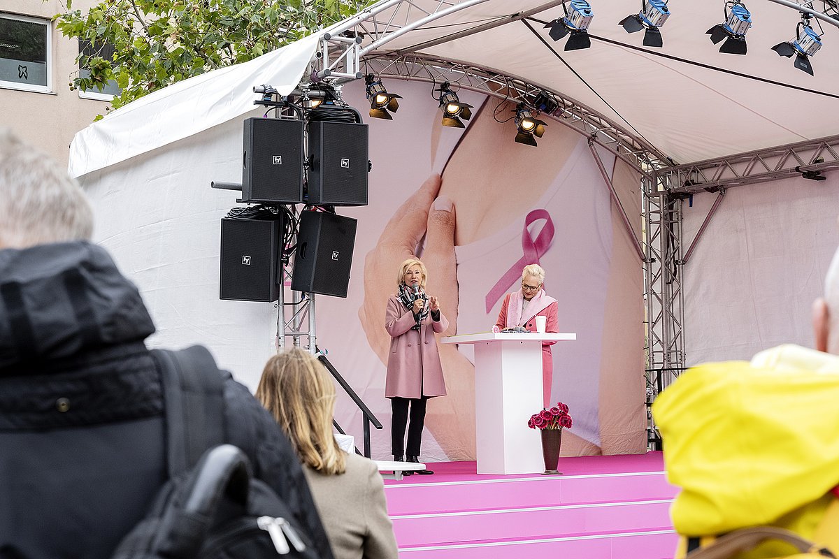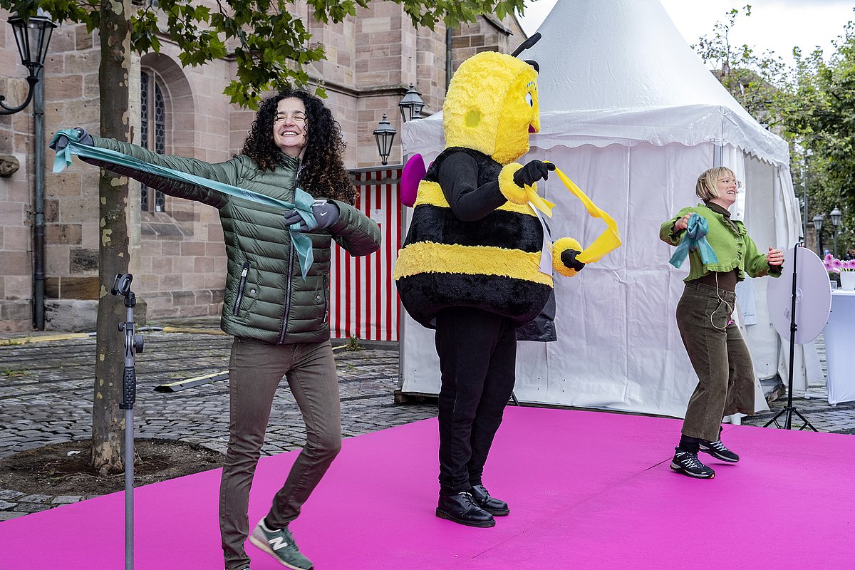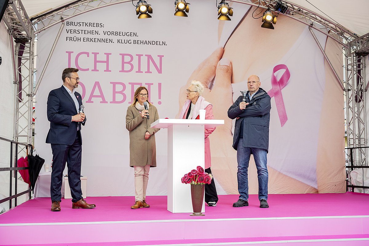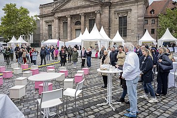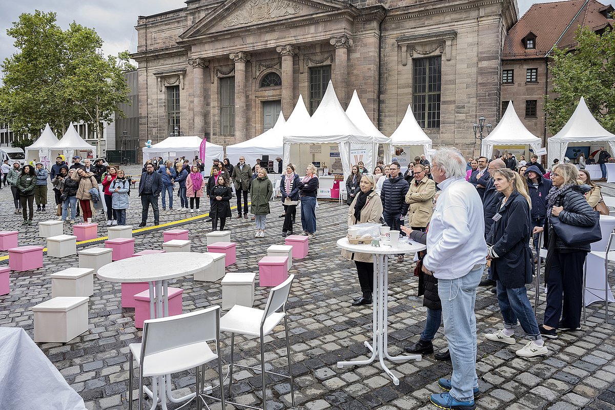 Am Samstag, den 14. September 2024 fand der Aktionstag gegen Brustkrebs „ICH BIN DABEI“ auf dem Jakobsplatz in Nürnberg statt. Ziel der Veranstaltung war es, die breite Bevölkerung umfassend über das Thema Brustkrebs zu informieren. Der Tag soll auch dazu dienen, die "Schwellenangst" vor dem Besuch eines Brustzentrums oder einer Klinik zu nehmen und in angenehmer Atmosphäre eine Beratung zur Zielgruppe zu bringen.