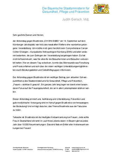 Die Bayerische Staatsministerin für Gesundheit und Pflege, Frau Judith Gerlach, war als Rednerin ebenfalls anwesend. Ihr Grußwort kann hier nachgelesen werden.
