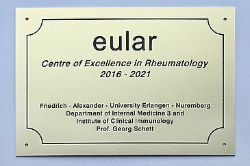 Die außerordentlich breiten klinischen und wissenschaftlichen Fachkenntnisse sowie die ärztliche Kompetenz der Erlanger Klinik ist mit der Anerkennung zum europäischen Center of Excellence nach den Richtlinien der EULAR ausgezeichnet worden. Die EULAR führt ein Register der europäischen Spitzenforschungszentren der Rheumatologie, um eine Gruppe von erstklassigen Forschungszentren für Wissenschaftler zu etablieren und den Austausch des wissenschaftlichen Nachwuchses zu fördern. Derzeit hat die EULAR 22 europäische Einrichtungen als Centers of Excellence ausgezeichnet.