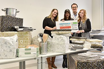 Im stationären Klinikalltag ein Stück normales Leben bewahren, gemeinsam kochen oder einen Ort finden, um kurz zur Ruhe zu kommen: Den Eltern der jungen Patienten in der Kinder- und Jugendklinik (Direktor: Prof. Dr. Dr. h. c. Wolfgang Rascher) des Universitätsklinikums Erlangen hilft dabei die Elterninitiative krebskranker Kinder Erlangen e. V. Diese wiederum erhielt jetzt eine Sachspende im Wert von 3.000 Euro - gesammelt und übergeben von Tamara Schleßmann und Dilara Zinner, zwei Mitarbeiterinnen der GfK in Nürnberg. Stellvertretend für die Eltern und Patienten freuten sich Prof. Dr. Markus Metzler, Leiter der Erlanger Kinderonkologie, und Leonie Roderus, Sozialpädagogin der Elterninitiative.
