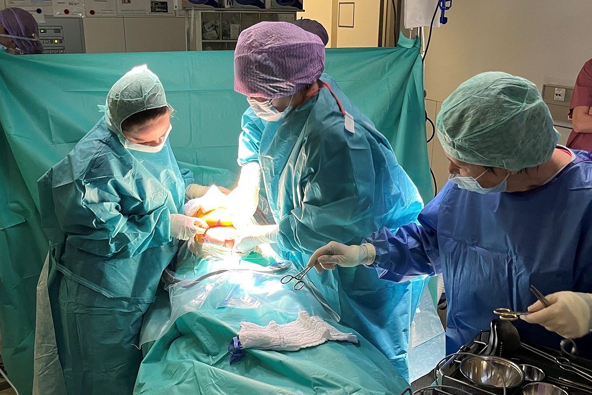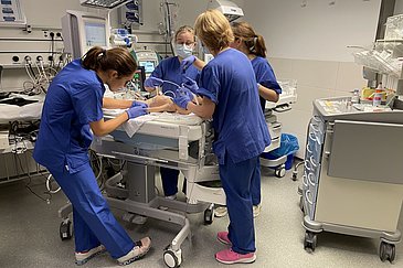 Fachkräfte des Uniklinikums Erlangen trainieren Notkaiserschnitte
