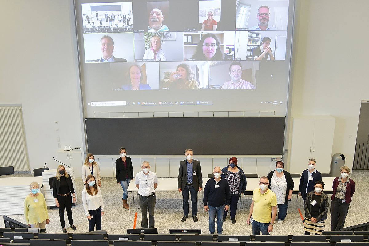 Hierzu versammelten sich alle Projektpartner (das Forschungsteam der Palliativmedizinischen Abteilung der Uniklinik Erlangen, das Forschungsteam der Klinik und Poliklinik für Palliativmedizin des LMU Klinikums München, das Institut für Geschichte und Ethik der Medizin an der MLU Halle-Wittenberg und der Lehrstuhl für Strafrecht, Strafprozessrecht, Wirtschafts- und Medizinstrafrecht der FAU Erlangen-Nürnberg), Vertreter von teilnehmenden Palliativstationen, externe Expert:innen sowie Bürger:innen als Vertreter der Öffentlichkeit, um gemeinsam in die Projektarbeit zu starten und alle Projektbeteiligten durch die Projektpartner willkommen zu heißen.
