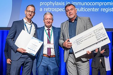 In seiner prämierten Forschungsarbeit untersuchte PD Dr. Lukas Müller-Wirtz, wie häufig Katheter-bedingte Infektionen bei immungeschwächten Patientinnen und Patienten bei Regionalanästhesie auftreten. Zudem wertete er aus, wie schwer Infektionen verlaufen und ob sie sich durch die Gabe von Antibiotika vorbeugen lassen. In einer multizentrischen Studie auf der Basis des von der DGAI und vom Berufsverband Deutscher Anästhesistinnen und Anästhesisten e. V. getragenen Netzwerks zur Sicherheit in der Regionalanästhesie und Akutschmerztherapie (net-ra) analysierte er Daten von mehr als 196.000 Regionalanästhesie-Kathetern – darunter über 1.300 bei immungeschwächten Personen. Das Ergebnis: Katheterverfahren zur Regionalanästhesie sind auch bei immungeschwächten Patientinnen und Patienten eine sichere Option, jedoch tragen sie ein erhöhtes Infektionsrisiko und erste Infektionszeichen treten bei ihnen bereits früher auf. Eine Antibiotikaprophylaxe wirkt in dieser Personengruppe etwas besser, sollte aber auf besonders gefährdete, schwer immungeschwächte Patientinnen und Patienten beschränkt werden.