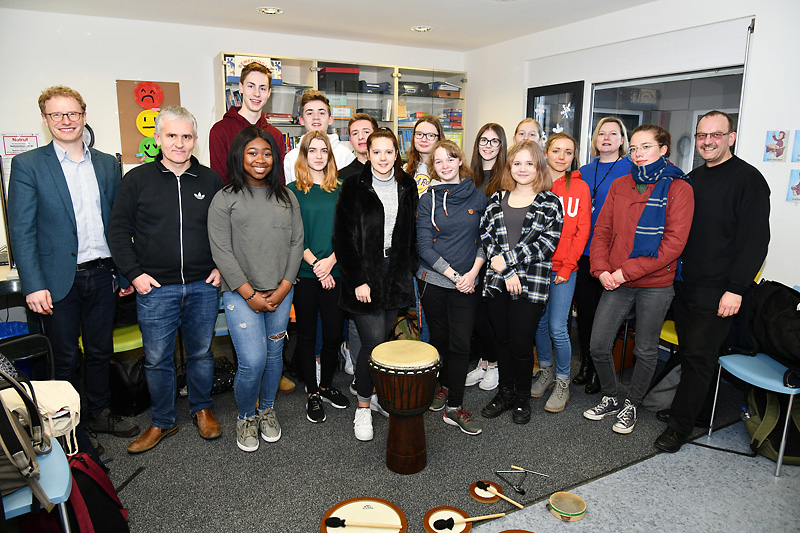 "Alles, was die Psyche betrifft, ist irgendwie uncool, darüber spricht keiner", sagte der leitende Oberarzt PD Dr. Oliver Kratz den Schülern bei der Übergabe ihrer Spende. "Dabei sind psychische Erkrankungen für uns Ärzte und Therapeuten nicht anders als andere Erkrankungen. Die Werner-von-Siemens-Realschule ist für mich eine besondere Schule im positiven Sinn, weil sie das Thema offen und empathisch behandelt." PD Dr. Kratz bedankte sich bei den Jugendlichen und Erwachsenen, die Jahr für Jahr dazu beitragen, dass neue Instrumente und anderes Equipment für die Musiktherapie der Erlangen Kinderpsychiatrie gekauft werden können. "Das Geld von eurem Konzert kommt aus der Musik und geht direkt in die Musik - nirgendwo anders hin", versprach Oliver Kratz.