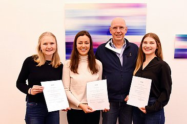 Im obligatorischen Blockpraktikum während des Medizinstudiums haben Studierende die Gelegenheit, an realen Patientenfällen teilzunehmen, diagnostische Fähigkeiten zu entwickeln und grundlegende Untersuchungen durchzuführen. Betreut und ausgebildet werden sie dabei von Kommilitoninnen und Kommilitonen, die selbst Medizin studieren und währenddessen als Tutorinnen und Tutoren in der Klinik tätig sind. Die drei besten Tutorinnen der Frauenklinik (Direktor: Prof. Dr. Matthias W. Beckmann) des Uniklinikums Erlangen im Sommersemester 2023 Lena Bolay, Lea Ferstl und Desiree Ludwig wurden für ihre Arbeit nun mit dem Fortbildungsstipendium des Fördervereins der Frauenklinik e. V. ausgezeichnet. Die Urkunden überreichte Prof. Beckmann in seiner Funktion als erster Vorsitzender des Fördervereins.