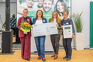 Aktuell werden rund 310 Frauen und Männer am Uniklinikum Erlangen zu Pflegefachpersonen sowie zu Anästhesietechnischen oder Operationstechnischen Assistentinnen und Assistenten ausgebildet. „Auszubildende im Gesundheitswesen sind von Anfang an mit verschiedenen körperlichen, psychischen und emotionalen Belastungen konfrontiert“, erklärt Bianca Adler. „Gerade deshalb sind frühe gesundheitsförderliche Maßnahmen seitens des Arbeitsgebers für diese Beschäftigtengruppe von großer Bedeutung.“ Für die Auszubildenden wurde ein jährlicher Gesundheitstag im Klassenverbund konzipiert, der auf die Bedürfnisse der jungen Beschäftigten ausgerichtet ist und deshalb pro Lehrjahr unterschiedliche inhaltliche Schwerpunkte beinhaltet. Außerdem gibt es jährlich zwölf digitale Gesundheitsangebote, die auf Grundlage von Befragungen der Auszubildenden festgelegt werden. Das Projekt ist im April 2024 an den Start gegangen und läuft noch bis Dezember 2026. Bei der Preisverleihung hob die Jury hervor, dass sie insbesondere von der inhaltlichen Ausrichtung der Gesundheitstage nach den Bedürfnissen der Auszubildenden beeindruckt ist.