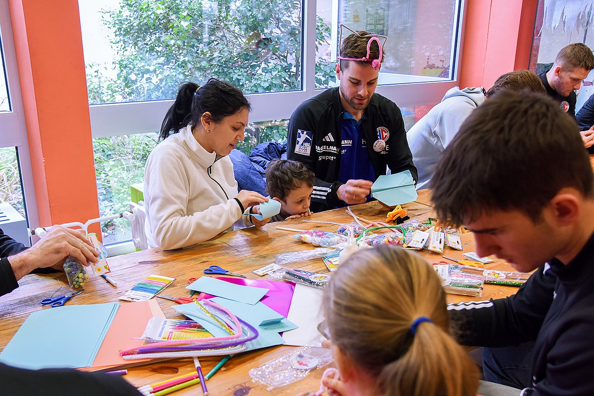 Die Mannschaft des HC Erlangen besuchte die Erlanger Kinderklinik für einen gemeinsamen Bastelvormittag
