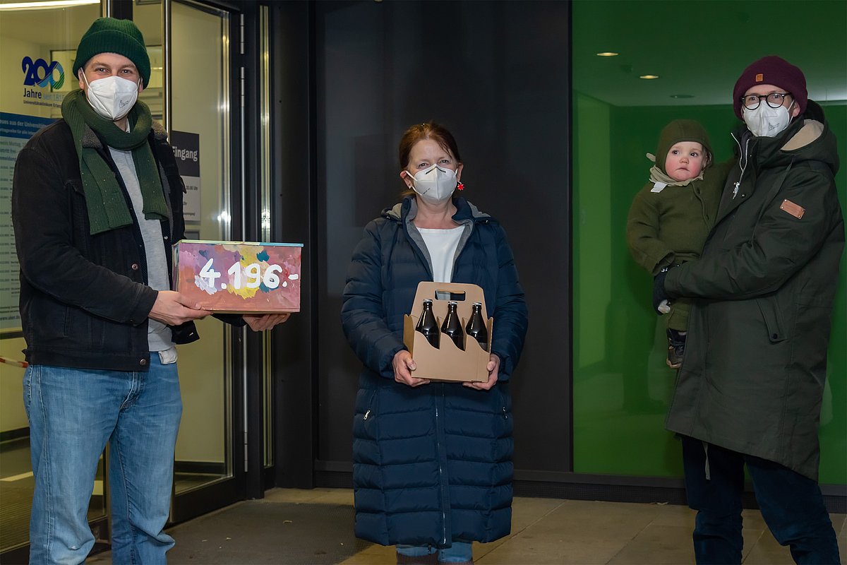 Mitte Dezember 2021 hätten Vincenz und Xaver Schiller ihre neue Brauerei im „Entla’s Keller“ eröffnet, doch die Feierlichkeiten mussten aufgrund der Coronapandemie auf das kommende Jahr verschoben werden. Die Brüder hatten für die Eröffnung allerdings schon reichlich Bockbier gebraut, das sie deshalb kürzlich für den guten Zweck verkauften. Den Erlös in Höhe von 4.196 Euro übergaben Vincenz und Xaver Schiller nun an Marion Müller, leitende Erzieherin der Kinder- und Jugendklinik (Direktor: Prof. Dr. Joachim Wölfle) des Universitätsklinikums Erlangen. „Von dieser tollen Spendensumme kaufen wir Spielsachen für die jungen Patientinnen und Patienten, um ihnen den Aufenthalt bei uns ein wenig angenehmer zu machen“, sagte Marion Müller.