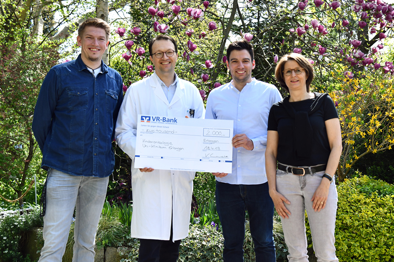 Am 6. Juni 2019 ist es wieder soweit und die Bergkirchweih lockt Tausende Besucher auf die Erlanger Bierkeller. Und während die „Berch“-Fans schon der 264. Bergkirchweih entgegenfiebern, freuen sich die jungen Patienten der Kinderonkologie der Kinder- und Jugendklinik (Direktor: Prof. Dr. Dr. h. c. Wolfgang Rascher) des Universitätsklinikums Erlangen noch über die letztjährige Ausgabe: Denn da erarbeiteten Steinbach-Bräu-Kellner 2.000 Euro, die sie jetzt der Erlanger Kinderonkologie spendeten. Prof. Dr. Markus Metzler, Leiter der Kinderonkologie, nahm den Scheck stellvertretend für seine Patienten entgegen.