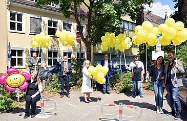 Drei befreundete Unternehmer – eine tolle Idee: 70 knallgelbe Luftballons mit lustigen Smiley-Gesichtern erhielten das Kinderpalliativteam und die Kinder- und Jugendklinik (Direktor: Prof. Dr. Joachim Wölfle) des Universitätsklinikums Erlangen von drei Schwabacher Firmen geschenkt.