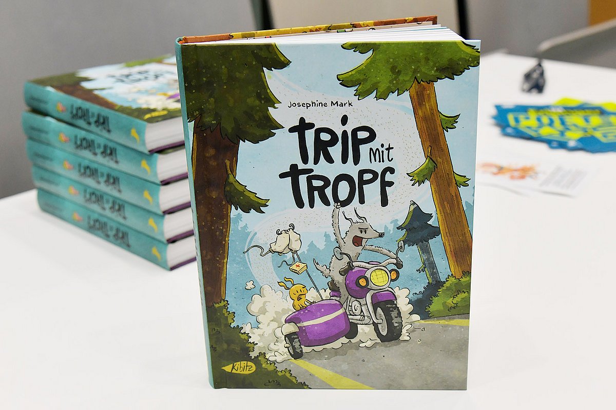 Die ersten Entwürfe für „Trip mit Tropf“ zeichnete Josephine Mark 2019 im Rahmen eines Comic-Zeichenseminars in Erlangen. „Damals brauchte ich Ablenkung von meiner Chemotherapie und verarbeitete so das Thema“, berichtete die Künstlerin. In ihrem Mutmach-Buch, für das sie bereits mehrfach ausgezeichnet wurde, geht es nicht nur ums Kranksein und ums Genesen, sondern auch um die bedeutende Rolle von Freundschaft und gegenseitiger Unterstützung. Der Kontakt zwischen der Autorin und der Kinderklinik wurde über einen gemeinsamen Bekannten von Katja Rausch, Mitarbeiterin des Erlanger Kulturamts, und Prof. Dr. Markus Metzler, Leiter der Kinderonkologie, hergestellt.
