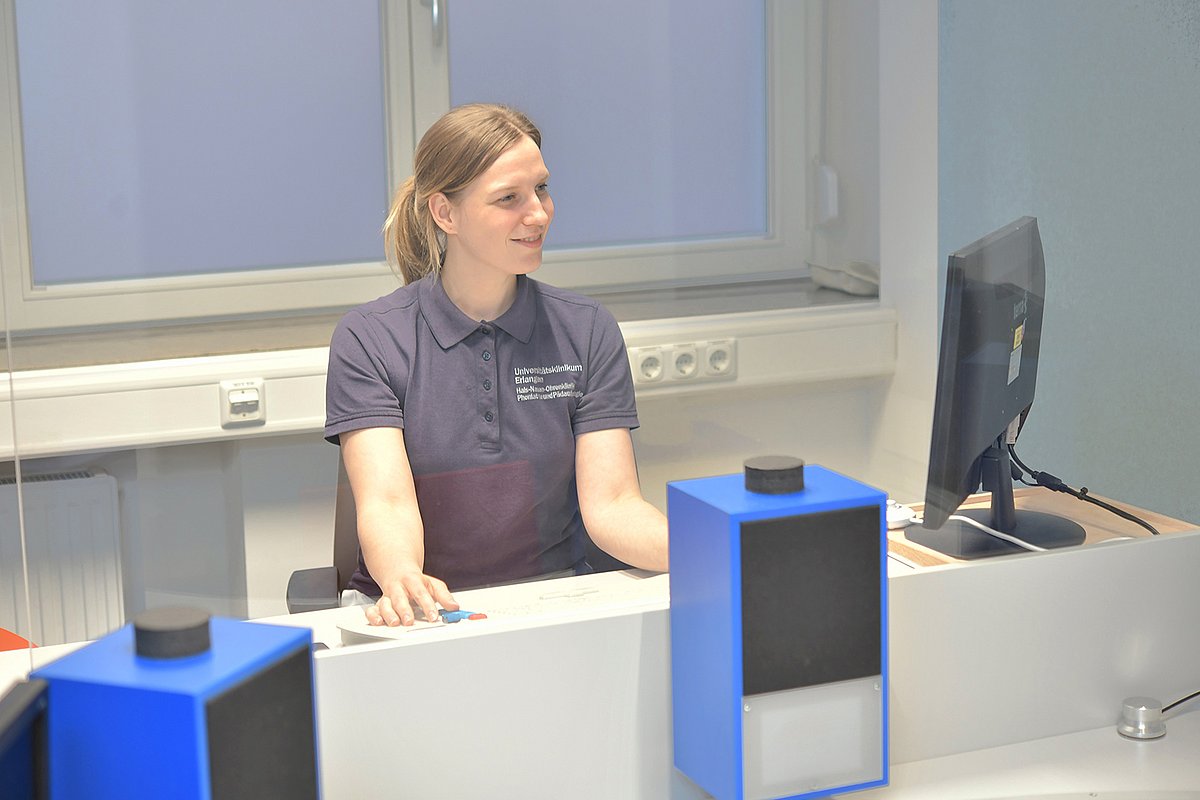 Eine Besonderheit am Uniklinikum Erlangen ist, dass die Logopädinnen mit den jungen Patientinnen und Patienten einen Hörtest durchführen. „Dafür spiele ich den Kindern über verschieden platzierte Lautsprecher Töne vor und schicke quasi an den Monitoren ein Bild hinterher“, erklärt die 29-Jährige. „In der Regel merken die Kleinen dann schnell, dass dort, wo der Ton herkommt, kurz darauf ein Bild auftaucht. So drehen die Kinder dann meist schon den Kopf in die richtige Richtung, und ich weiß, dass sie den Ton verorten können.“ Auf Basis des Hör- und der sprachlichen Tests stellen die Ärztinnen und Ärzte der Fachabteilung dann eine Verordnung aus, damit die jungen Patientinnen und Patienten in einer Logopädiepraxis weiterversorgt werden können.