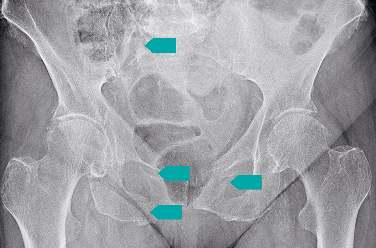 „Beim Beckenbruch gibt es zwei Altersgipfel“, erklärt der leitende Oberarzt und Leiter des Bereichs Beckenchirurgie am Uni-Klinikum Erlangen, Prof. Dr. Hans-Georg Palm. „Einen bei Männern zwischen 20 und 30 Jahren, die ein Hochrasanztrauma erleiden. Das heißt: Es wirkt eine hohe kinetische Energie auf den Körper ein – z. B. bei einem Verkehrsunfall oder einem Sturz aus großer Höhe. Der zweite Gipfel liegt bei älteren Frauen mit osteoporotisch veränderten Knochen, die leichter brechen – auch schon bei einem einfachen Sturz.“ Die Bruchmorphologie ist bei beiden Gruppen sehr unterschiedlich: Während bei großen Unfallverletzungen der Schaden sofort erklär- und sichtbar wird, sind Beckenbrüche bei alten Menschen oft nicht so schnell diagnostizierbar. „Manchmal klagt jemand schon längere Zeit über stark ausgeprägte Schmerzen in der Hüfte, im Rücken oder in der Leiste, aber erst bei einer Computertomografie (CT) oder einer Magnetresonanztomografie wird eine Fraktur erkennbar“, weiß Prof. Palm. In diesem Zusammenhang forscht der Beckenexperte schon seit mehreren Jahren zur Dual-Energy-CT, die Gewebe sehr differenziert darstellt und somit Altersbeckenbrüche noch besser sichtbar macht. Das Uni-Klinikum Erlangen nimmt zudem an der bundesweiten „AG Becken III“ der Deutschen Gesellschaft für Unfallchirurgie e. V. teil, die unter anderem Daten zur Epidemiologie und zu neuen operativen Techniken sammelt.
