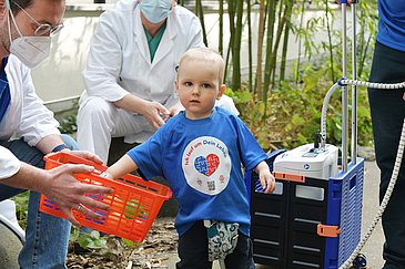 Jakob aus Freystadt im Landkreis Neumarkt in der Oberpfalz ist zwei Jahre alt und wiegt knapp zwölf Kilo – nur etwas weniger als sein mobiles Kunstherz, das er selbst schieben kann. Wegen einer seltenen Herzmuskelschwäche ist der Junge auf das handgepäckstückgroße Gerät angewiesen – so lange, bis ein Spenderorgan für ihn gefunden wird. Nach einer Routineuntersuchung in der Ambulanz der Kinderkardiologischen Abteilung (Leiter: Prof. Dr. Sven Dittrich) des Universitätsklinikums Erlangen durfte Jakob jetzt die Lostrommel rühren. „Bei unserem Digital-Kongress ,Herzmedizin 2021‘, veranstaltet von der Deutschen Gesellschaft für Thorax-, Herz- und Gefäßchirurgie und der Deutschen Gesellschaft für Pädiatrische Kardiologie und Angeborene Herzfehler, gab es für alle Teilnehmer ein Quiz. Jakob durfte jetzt nach der Veranstaltung die drei Gewinner ermitteln“, erklärte Tagungspräsident Prof. Dr. Robert Cesnjevar, Leiter der Kinderherzchirurgischen Abteilung des Uni-Klinikums Erlangen – und der Arzt, der Jakob im November 2020 sein Kunstherz implantierte. Auf ein Spenderorgan wartet der Kleine nun schon seit über vier Monaten. Ein neues Herz – für Jakob wäre das der Hauptgewinn.