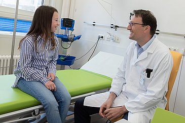 19_KI_PK_CML_28_presse:Seit drei Jahren ist Lea bei Prof. Dr. Markus Metzler in der Erlanger Kinderonkologie in Behandlung. Täglich nimmt das Mädchen eine kleine Tablette ein. Ob die weiterhin gut wirkt, wird bei regelmäßigen Kontrollterminen überprüft.
