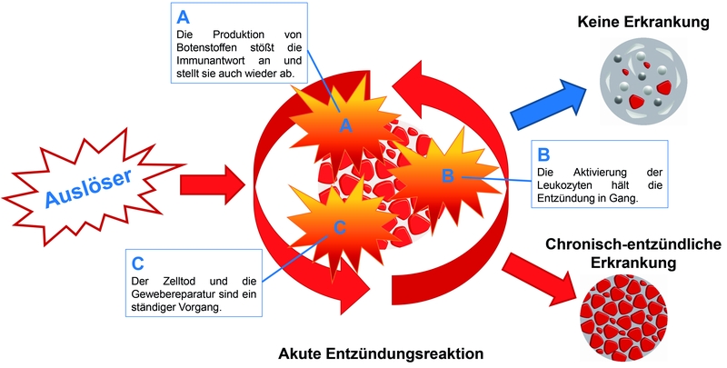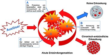 Zwar sind Entzündungen lebenswichtig für die Abwehrfunktion des Körpers, sie müssen aber entsprechend abgeschaltet werden, wenn der Auslöser der Entzündung wieder vorbei ist. Wie das genau funktioniert, ist bisher wenig verstanden. Im SFB1181 gehen die Wissenschaftlerinnen und Wissenschaftler aus unterschiedlichen Fachbereichen der Medizin, Biologie und Physik den grundlegenden Mechanismen der Auflösung der Entzündungsreaktion auf die Spur. In der ersten Förderperiode wurden bereits zentrale Mechanismen dieses wichtigen Regulationsprozesses aufgeklärt. Diese Erkenntnisse sollen nun in der zweiten Förderperiode weiter vertieft werden, um in Zukunft die Auflösung von Entzündung als therapeutisches Prinzip nutzen zu können. Dies erfolgt in enger Kooperation mit dem in Erlangen neu gegründeten Deutschen Zentrum Immuntherapie.
