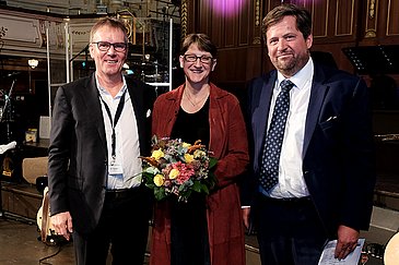 "Das Lymphsystem ist so etwas wie die Müllabfuhr des Körpers", erklärt die Preisträgerin aus Herzogenaurach. "Abgestorbene Zellen oder Eiweiße werden von der Lymphflüssigkeit gesammelt und über die Lymphknoten abtransportiert." Bei einem Lymphödem funktioniert dieses System nicht mehr - die Lymphe sammelt sich im Körper und lässt ihn anschwellen. "Dies kann genetische Gründe haben oder, wie in meinem Fall, die Folge einer Lymphknotenentfernung nach einer Krebserkrankung sein. Auch eine Fettverteilungsstörung ist ein möglicher Auslöser." Susanne Helmbrecht bekam ihre Krankheit in den Griff und wollte mit ihren Erfahrungen anderen Betroffenen helfen. Zusammen mit weiteren Lymphödem-Patienten gründete sie 2012 den Lymphselbsthilfe e. V., der neben dem Angebot von Workshops, einer Zeitschrift und einem Beratungstelefon auch bei der Gründung eigener Selbsthilfegruppen berät. "Wir sind außerdem in den politischen Gremien aktiv, um die Versorgung der Lymphödem-Patienten in Deutschland zu verbessern", betont Susanne Helmbrecht. Vor allem in der Behandlung des Lipödems sieht sie noch Defizite. Diese Fettverteilungsstörung tritt häufig an Hüfte, Oberschenkeln und Oberarmen auf und kann das Lymphsystem ebenfalls schädigen (Lipo-Lymphödem).