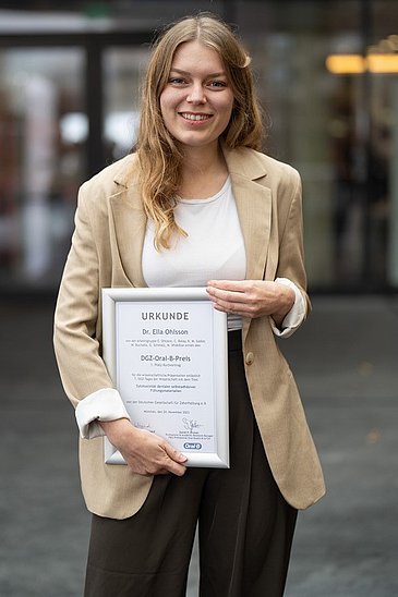 Dr. Ella Ohlsson wurde auf der Jahrestagung 2023 der Deutschen Gesellschaft für Zahnerhaltung (DGZ) in München mit dem DGZ-Oral-B-Preis ausgezeichnet.