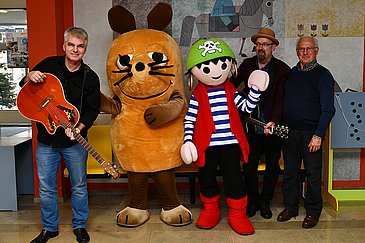 Anlässlich ihres fünfzehnjährigen Jubiläums hat sich die Stiftung für krebskranke und behinderte Kinder in Bayern (KreBeKi) eine besondere Weihnachtsaktion ausgedacht. Vom 9. bis 14. Dezember besucht die Stiftung mit zwei Musikern und der Maus aus der „Sendung mit der Maus“ zehn bayerische Kinderkliniken, um ihnen eine besondere Freude zu bereiten. Auch den kleinen Patientinnen und Patienten der Kinder- und Jugendklinik (Direktor: Prof. Dr. Joachim Wölfle) des Universitätsklinikums Erlangen konnten die Maus, der PLAYMOBIL-Pirat Rico, das Vorstandsmitglied der Stiftung KreBeKi Ludwig Faltermeier sowie die Musiker Robert Prill und Hubert Treml ein Lächeln ins Gesicht zaubern. Die Stiftung Kinderförderung von PLAYMOBIL unterstützte dieses Jubiläum der Stiftung KreBeKi mit einer großzügigen Sachspende für die Kinderklinik: Dank dieser Unterstützung konnten zahlreiche Spielesets an die Kinderklinik übergeben werden.