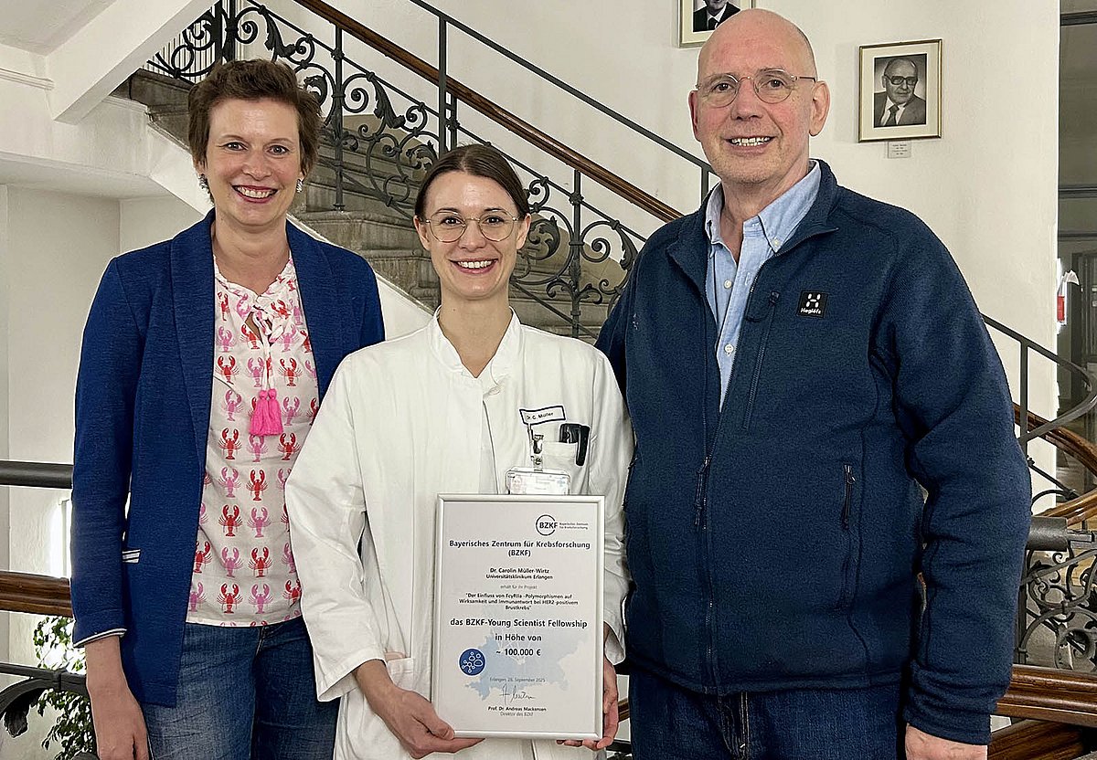 Brustkrebs ist die weltweit häufigste Krebserkrankung bei Frauen. Besonders aggressiv ist hierbei die HER2-positive Form, die etwa 15 Prozent der Patientinnen betrifft. Moderne Antikörpertherapien, wie (beispielsweise) Trastuzumab, haben die Prognose vieler betroffener Frauen deutlich verbessert. Doch nicht alle Patientinnen sprechen gleich gut auf diese Behandlung an. In einem innovativen Forschungsprojekt der Frauenklinik (Direktor: Prof. Dr. Matthias W. Beckmann) des Uniklinikums Erlangen untersucht Dr. Carolin Müller-Wirtz die Ursachen für diese Unterschiede. Das Bayerische Zentrum für Krebsforschung (BZKF) fördert das Vorhaben im Rahmen seines Young-Scientist-Fellowship-Programms mit insgesamt 100.000 Euro. „Solche Forschungsansätze bedeuten einen unmittelbaren Nutzen für die Patientinnen und Patienten und unterstützen den wissenschaftlichen Nachwuchs in Bayern“, unterstreicht Prof. Dr. Andreas Mackensen, Direktor des BZKF, die Bedeutung des Projekts.