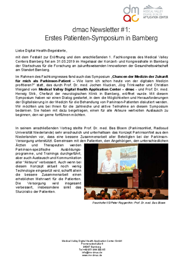 Herwig Strik, Chefarzt der neurologischen Klinik in Bamberg, eröffnet wurde. Mit diesem Symposium haben wir einen Dialog gestartet, in dem die Möglichkeiten und Herausforderungen der Digitalisierung in der Medizin für die Behandlung von Parkinson-Patienten diskutiert werden.