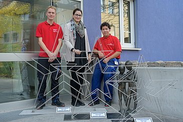 Biegen, Schneiden, Schweißen – beim diesjährigen Azubiprojekt der Metallbauer für Konstruktionstechnik am Uniklinikum Erlangen waren Präzision und Köpfchen gefragt. Die Aufgabe, die ihnen der Leiter des Dezernats Gebäudewirtschaft, Robert Stark, gestellt hatte: Konstruiert etwas, das mit Weihnachten in Verbindung steht. Entstanden sind insgesamt sechs beleuchtete Sterne unterschiedlicher Größe, die jetzt in der Advents- und Weihnachtszeit den Eingang der Kinder- und Jugendklinik (Direktor: Prof. Dr. Joachim Wölfle) des Uniklinikums Erlangen und das Mitarbeitendenrestaurant „Palmeria“ schmücken.