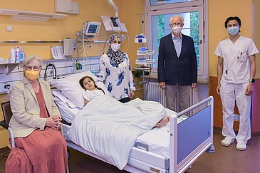Die siebenjährige Fatimah erholt sich in diesen Tagen in der Kinder- und Jugendklinik des Universitätsklinikums Erlangen von ihrer schweren Herzoperation. Seit April befindet sich das Mädchen, das mit einem komplizierten Herzfehler geboren wurde und in sehr ärmlichen Verhältnissen im Irak lebt, in Begleitung seiner Mutter in Erlangen. Dem großen Engagement eines Frankfurter Kinderarztes, des Erlangen hilft e. V., Mitarbeiterinnen und Mitarbeitern des Universitätsklinikums Erlangen sowie Spenden von Bürgerinnen und Bürgern ist es zu verdanken, dass Fatimah nun im Rahmen der Aktion „Kinderherz-OP“ erfolgreich behandelt werden konnte. „Bis zur lebensrettenden Operation Ende Juni war es ein sehr langer Weg für alle Beteiligten“, sagt Prof. Dr. Sven Dittrich, Leiter der Kinderkardiologischen Abteilung des Uni-Klinikums Erlangen. „Ich bewundere die Geduld der beteiligten Ehrenamtlichen und die Kraft der Familie. Ich freue mich, dass Fatimah sich aktuell so gut entwickelt und hoffe, dass wir sie bald gesund nach Hause entlassen können, wo ihr älterer Bruder und ihr Vater schon sehnsüchtig auf sie warten.“