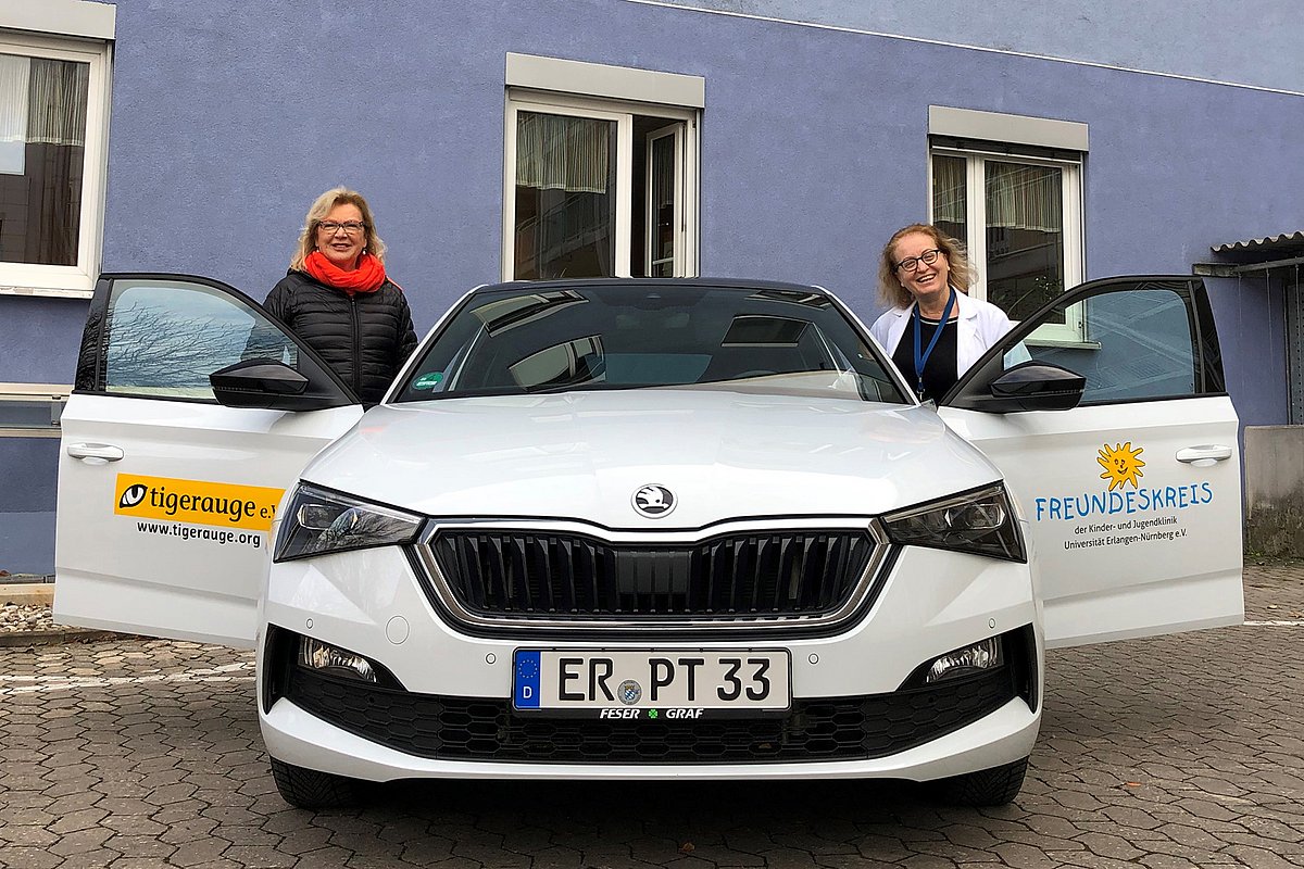 Die Franz-und-Erika-Hufnagel-Stiftung spendete 17.000 Euro an den Verein „Tigerauge“ Initiative Kinderhospiz Nordbayern (Vorsitzende: Dr. Dorothea Hobeck). Mit diesem Geld konnte der Tigerauge e. V. für das Kinderpalliativteam der Kinder- und Jugendklinik (Direktor: Prof. Dr. Joachim Wölfle) des Universitätsklinikums Erlangen jetzt ein weiteres Auto finanzieren, mit dem schwerst- und sterbenskranke Kinder und Jugendliche in ganz Mittel- und Oberfranken zu Hause besucht werden. Die Uwe-Feser-Kinderstiftung unterstützte den Fahrzeugkauf zusätzlich mit 2.000 Euro. Der Freundeskreis der Kinderklinik wird die Unterhaltungskosten für das neue Dienstauto übernehmen.