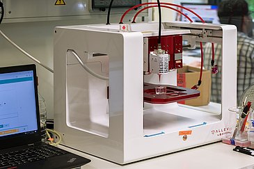 „Mit dem 3-D-Bioprinting können wir aktuell noch kein so komplexes Organ wie das menschliche Herz vollständig drucken, denn es besteht ja nicht nur aus Muskelzellen, sondern auch aus anderen Gewebestrukturen. Die Realisierung dieser Vision dauert sicher noch Jahrzehnte“, so Maren Fiedler, Doktorandin im Team von Prof. Engel. „Unser derzeitiger Anspruch ist es daher, zunächst ein herzähnliches System für effiziente Testungen von potenziell neuen Medikamenten gegen Herz-Kreislauf-Erkrankungen herzustellen und dadurch die präklinische Forschung an Tiermodellen zu reduzieren.“ Außerdem forscht das Team daran, das künstlich hergestellte Gewebe als Transplantat für die Reparatur des Herzes einzusetzen. „Das wäre dann eine Art ‚Herzpflaster‘, das zum Beispiel Patientinnen und Patienten mit schwerer Herzinsuffizienz gute Dienste leisten könnte.“