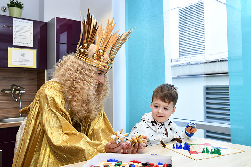 Um gerade den jüngsten Patientinnen und Patienten die Advents- und Weihnachtszeit im Uni-Klinikum Erlangen zu verschönern, luden die Erzieherinnen der Kinder- und Jugendklinik (Direktor: Prof. Dr. Joachim Wölfle) auch in diesem Jahr wieder zu zahlreichen stimmungsvollen Aktionen ein. Das traditionelle Highlight: der Besuch des Nürnberger Christkinds. In seinem unverwechselbaren goldenen Gewand schwebte es über die Stationen, besuchte die kranken Kinder und Jugendlichen an ihren Betten, überreichte ihnen Glückssterne und wünschte Ihnen gute Genesung.