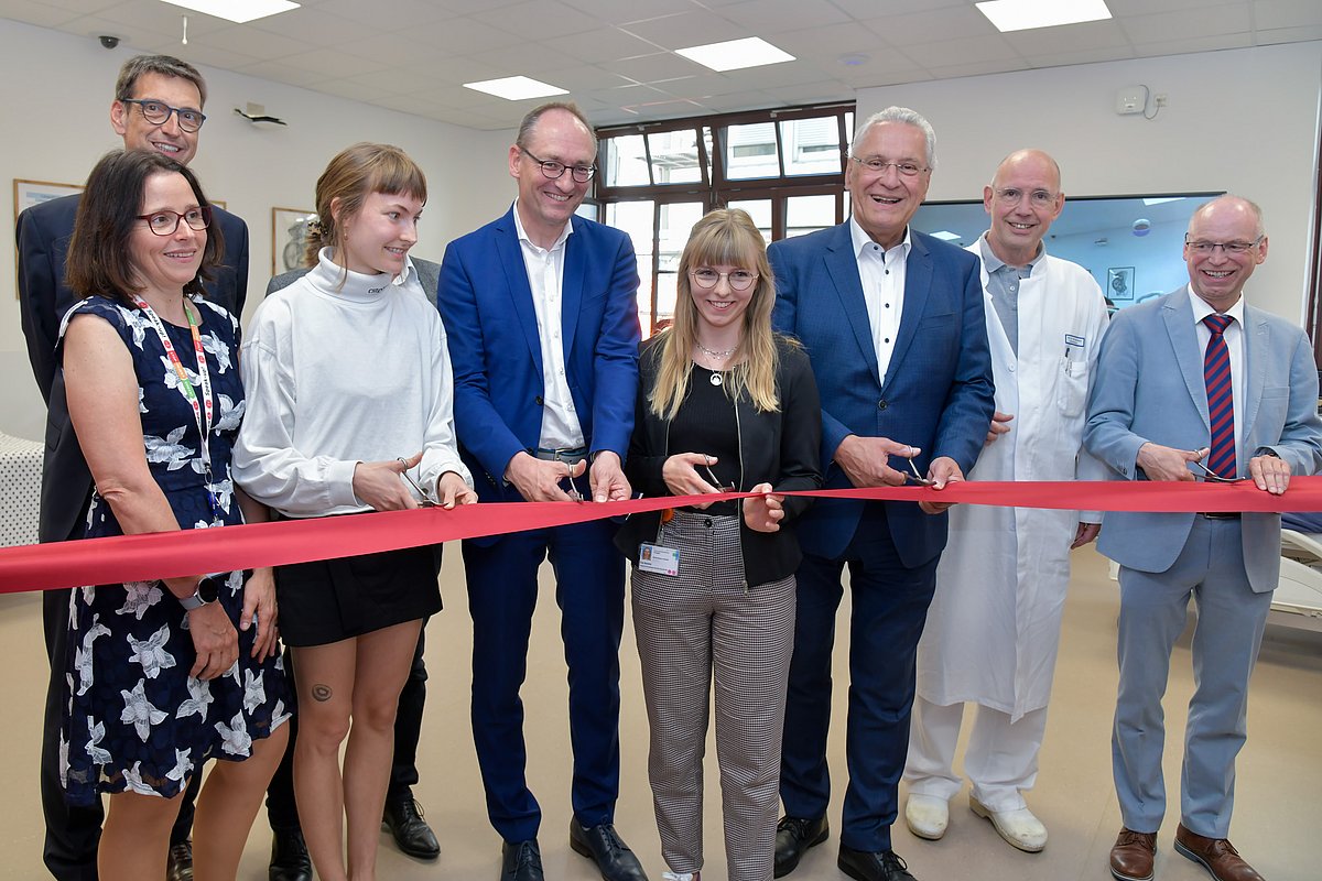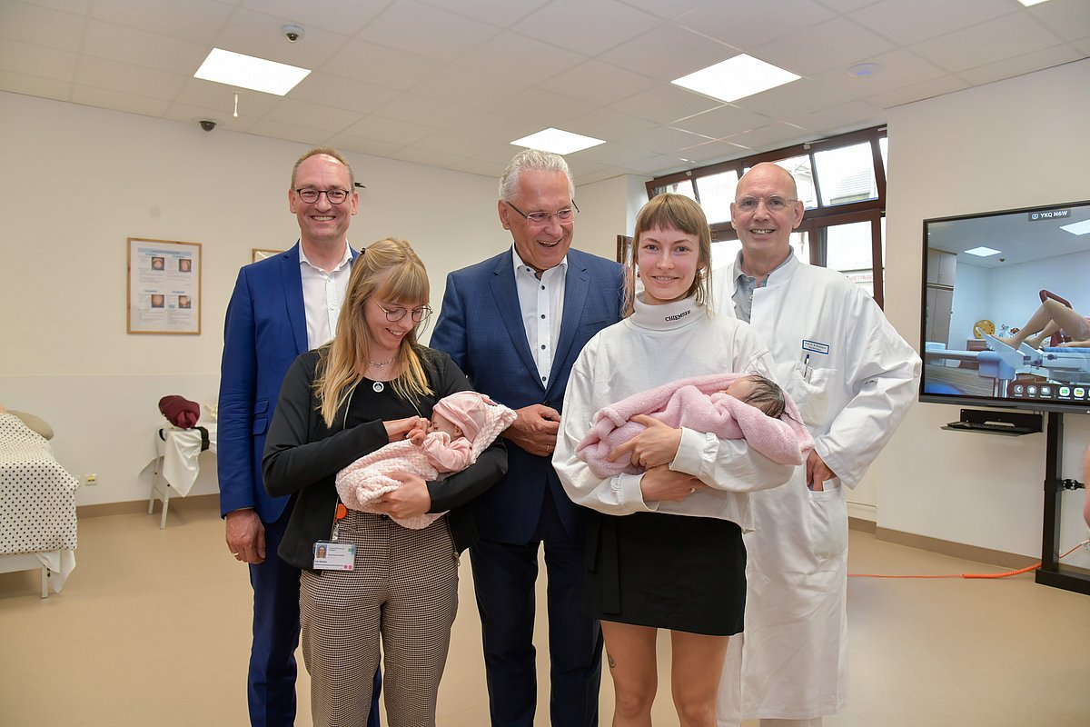 Eine gut ausgebildete Hebamme an der Seite zu haben, die in jeder Situation kompetent unterstützt, ist für werdende Mütter sehr wichtig. Damit angehende Hebammen umfassende klinisch-praktische Fähigkeiten und Fertigkeiten erwerben können, hat die Frauenklinik (Direktor: Prof. Dr. Matthias W. Beckmann) des Uniklinikums Erlangen ein neues Skills- und Simulationslabor eingerichtet. Am heutigen Donnerstag (29. Juni 2023) wurde dieses nun feierlich eröffnet – im Beisein von Joachim Herrmann, Bayerischer Staatsminister des Innern, für Sport und Integration, Bernhard Seidenath, Vorsitzender des Fachausschusses für Gesundheit und Pflege im Bayerischen Landtag, und Frank Plesse, Ministerialrat des Bayerischen Staatsministeriums für Gesundheit und Pflege. Im Rahmen der Veranstaltung bekamen die Anwesenden Einblicke in die praxisnahe Ausbildung der angehenden Hebammen im Studiengang „Hebammenwissenschaft“ am Uniklinikum Erlangen und an der Friedrich-Alexander-Universität Erlangen-Nürnberg (FAU).