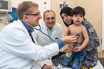 Am Uni-Klinikum Erlangen stießen die engagierten Ehrenamtlichen gleich auf offene Ohren. Bereits in der Vergangenheit hatten die Ärzte im Rahmen der Aktion "Kinderherz-OP" gemeinsam mit dem Erlangen hilft e. V. und dank der großen Spendenbereitschaft der Bevölkerung schwer herzkranken Kindern aus dem Ausland geholfen. "Bis jetzt hat sich unser kleiner Patient recht gut entwickelt", sagt Prof. Dr. Sven Dittrich, Leiter der Kinderkardiologischen Abteilung, der die Eingangsuntersuchungen bei dem Jungen vornahm. "Bei der Fallot'schen Tetralogie besteht aber immer das Risiko eines akuten Herzanfalls, der lebensbedrohlich ist." Deshalb haben die Experten des Uni-Klinikums Erlangen bereits einen Behandlungsplan aufgestellt. "Sobald die Finanzierung gesichert ist, bereiten wir die Korrekturoperation vor, bei der das Loch zwischen den beiden Herzkammern verschlossen wird", erläutert Prof. Dr. Robert Cesnjevar, Leiter der Kinderherzchirurgischen Abteilung. "Außerdem werden die Lungenschlagaderklappe und die Lungenschlagader selbst erweitert. Mit diesen Eingriffen besteht eine große Chance, dass Kayan anschließend ein normales Leben führen kann."