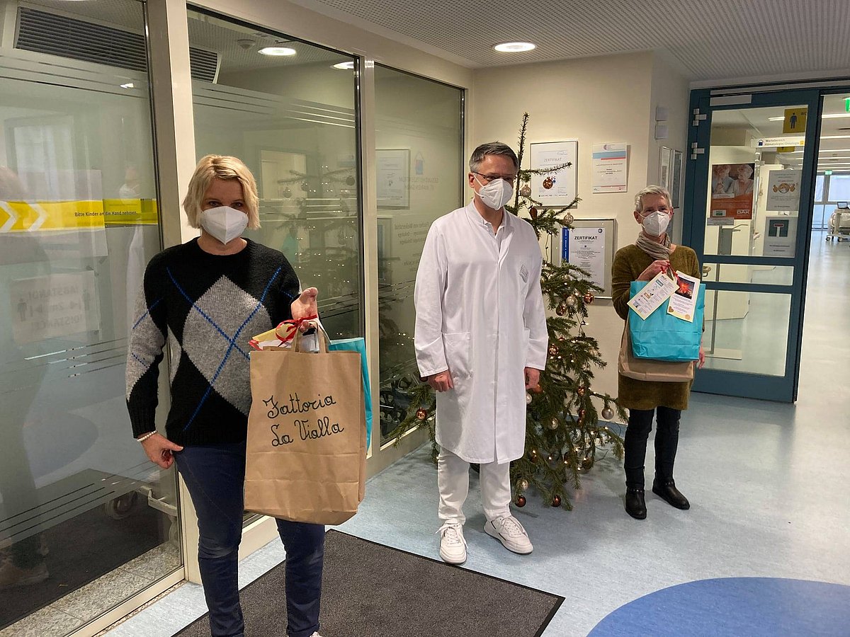 Alle Patienten im Onkologischen Zentrum des Klinikum St. Marien Amberg haben jetzt eine kleine Weihnachtsüberraschung überreicht bekommen. Weihnachtstüten gefüllt mit Pflegeprodukten für die onkologische Hautpflege, Produkten der Fattoria La Vialla sowie frischem Obst. Erstmalig wurde die Aktion im vergangenen Jahr durchgeführt. „Die Idee dazu hatte Andrea Neumeier. Sie hat den Kampf gegen ihre Krebserkrankung in diesem Jahr leider verloren, sie fehlt uns sehr. In ihrem Sinn werden wir die Aktion aber weiterführen und ab jetzt jedes Jahr machen“, so Susanne Hahn, die 2. Vorsitzende des FFGO e.V.