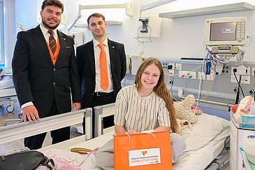 Mitarbeiter des Autovermieters SIXT verteilten weihnachtliche Geschenke in der Kinderklinik