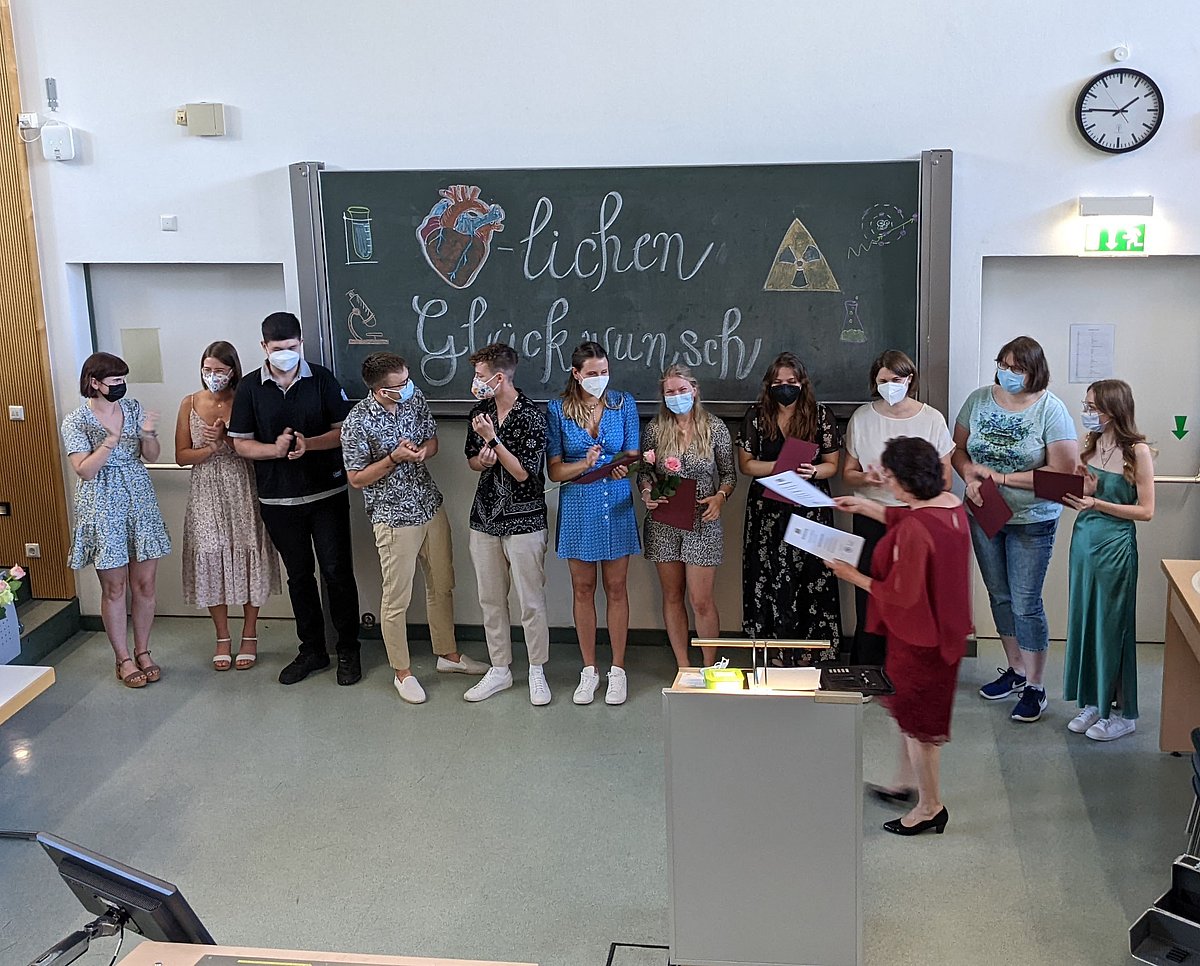 Die Erleichterung und die Freude der Absolventinnen und Absolventen nach den zahlreich bestandenen Prüfungen war deutlich spürbar. Die feierliche Zeugnisübergabe fand im großen Hörsaal der Kinderklinik statt. Neben der Rede von der Schulleiterin des BSZG, Frau Krapp, gratulierten Hr. Prof. Dr. Uder und Hr. Prof. Dr. Bogdan den jungen und motivierten BerufseinsteigerInnen.