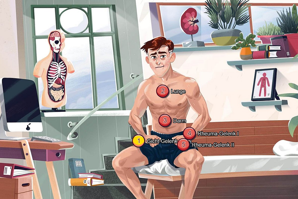 Das menschliche Immunsystem ist hochkomplex. Wenn es jedoch von Eindringlingen angegriffen wird, reagiert es mit Entzündung. Bei gewissen Erkrankungen kann der Körper die Entzündung nicht mehr abstellen, was zur Organschädigung führt. Was gegen überschießende Entzündungen bei Erkrankungen im Gelenk (Arthritis), im Darm (Colitis) und in der Lunge (Asthma) hilft und welche Zellen wichtig sind, vermittelt das Spiel "INFLAMMANIA - Fight for Cure".