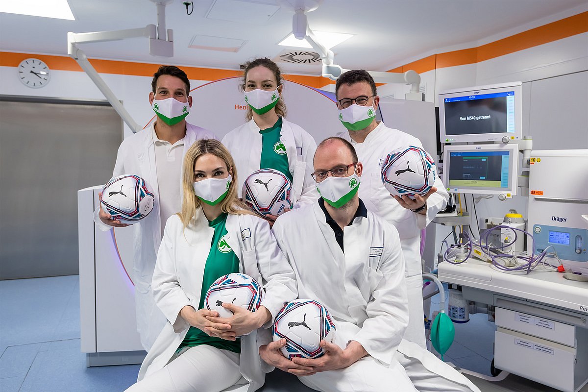 Der medizinische Kooperationsvertrag zwischen dem Universitätsklinikum Erlangen und der Spielvereinigung (SpVgg) Greuther Fürth startet am heutigen Freitag (13. August 2021) in die erste Bundesliga. Hauptansprechpartner für die Kleeblatt-Kicker vor, während und nach jedem Spiel ist das Team der Unfallchirurgischen Klinik – Orthopädische Chirurgie unter der Leitung von Prof. Dr. Mario Perl. „Wir unterstützen das Kleeblatt auch im Liga-Oberhaus mit den professionellen Strukturen des Uni-Klinikums Erlangen“, freut sich Dr. Stefan Söllner von der Unfallchirurgie. Er ist offizieller Mannschaftsarzt der Fürther Kicker und spielt selbst Fußball, seitdem er vier Jahre alt ist. „Die erste Bundesliga erfordert Höchstleistungen von den Profis, und auch wir sind rund um die Uhr mit unserem gesamten Know-how gefragt. Wir sind jedoch nur ein Teil eines großen multiprofessionellen Teams“, so Dr. Söllner weiter. Gemeinsam mit dem Allgemeinmediziner Dr. Pascal Oppel, der lange am Uni-Klinikum tätig war, betreuen die Erlanger Unfallchirurginnen und Unfallchirurgen sowohl die Profifußballer als auch die jungen Spielerinnen und Spieler der U17-, U19- und U23-Mannschaften des Nachwuchsleistungszentrums.