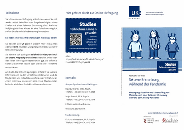 das Universitätsklinikum Hamburg-Eppendorf, Institut und die Poliklinik für Medizinische Psychologie, führt gemeinsam mit der Allianz Chronischer Seltener Erkrankungen (ACHSE e.V.) die Studie RESILIENT-SE-PAN durch. Gefördert wird das Projekt von der Eva Luise und Horst Köhler Stiftung.