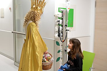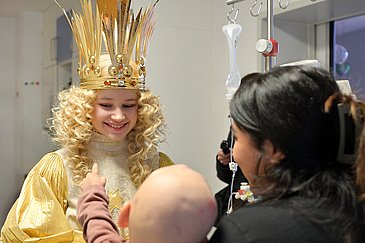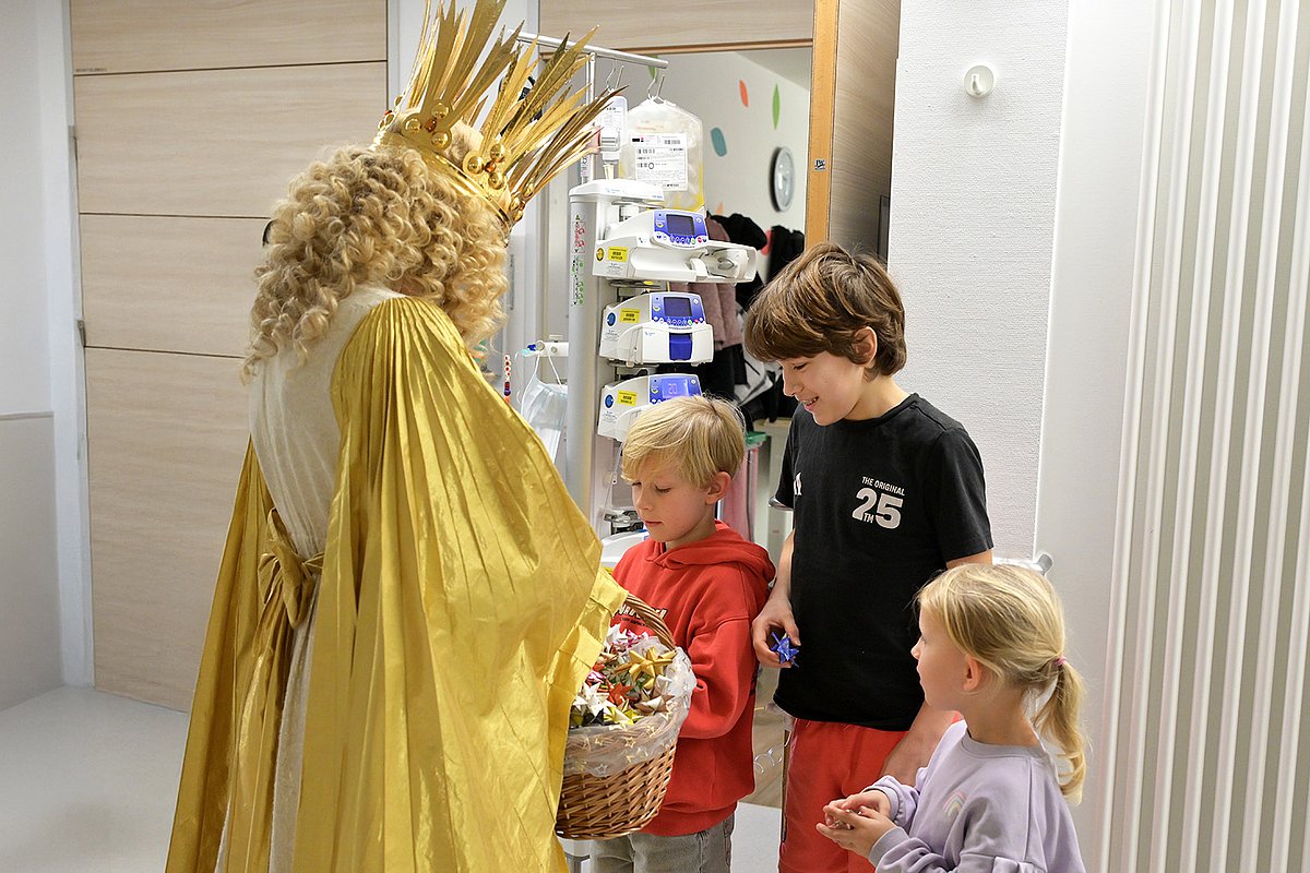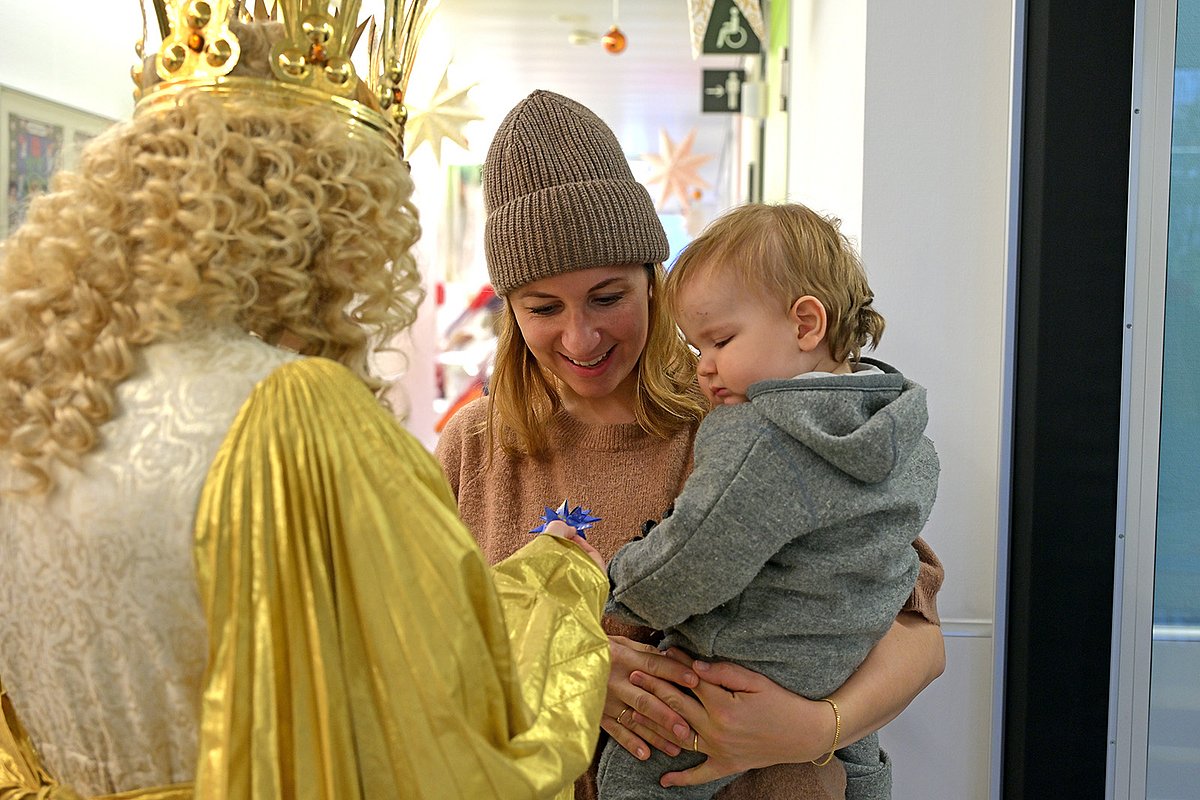 Genauso wie die Blaulichtaktion gehört auch der Besuch des Nürnberger Christkinds zur Vorweihnachtszeit am Uniklinikum Erlangen dazu. Im traditionellen Sternengewand und mit goldener Lockenpracht ging Nora Falk auf den Stationen der Kinderklinik von Zimmer zu Zimmer und nahm sich Zeit für die jungen Patientinnen und Patienten. Sie wünschte nicht nur ein schönes Fest und gute Genesung, sondern nahm auch noch Last-Minute-Wunschzettel entgegen.