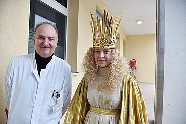 Ein weiterer Höhepunkt der vorweihnachtlichen Veranstaltungen war auch heuer wieder der Besuch des Nürnberger Christkinds, das mit seinem funkelnden Sternengewand und der goldenen Krone echten Glanz in die Krankenzimmer brachte. Die 18-jährige Teresa Windschall nahm sich viel Zeit, um den Kindern und Jugendlichen auf den Stationen persönlich zu begegnen und ihnen sowie allen Patientinnen und Patienten des Uniklinikums Erlangen ein schönes Weihnachtsfest und eine schnelle Genesung zu wünschen.