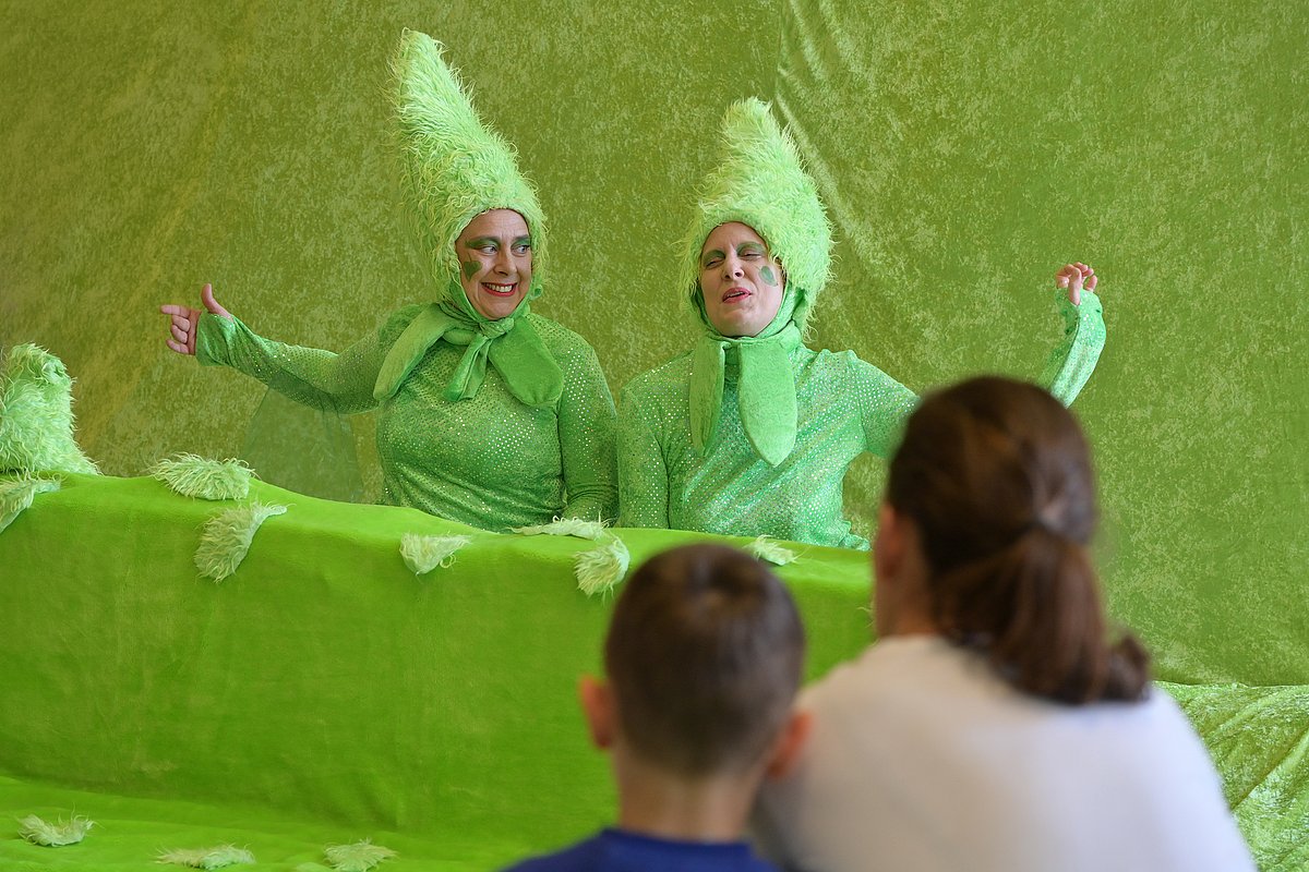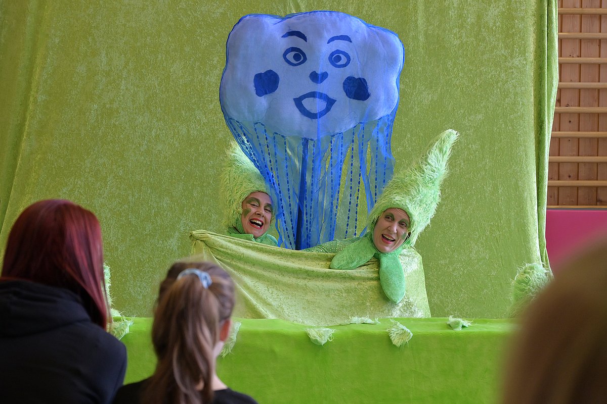 Überhaupt kein Blabla, sondern einen Bli-Bla-Blütentanz brachte das Purzeltraumtheater jetzt in der Kinder- und Jugendklinik des Uniklinikums Erlangen auf die Bühne. Dabei durften die jungen Patientinnen und Patienten und ihre Eltern den Schwestern Blumi und Blümi Gänseblümchen dabei zusehen, wie sie – als zwei kleine Knospen – die aufregende Welt der Pflanzen entdeckten und dabei um die Wette wuchsen.