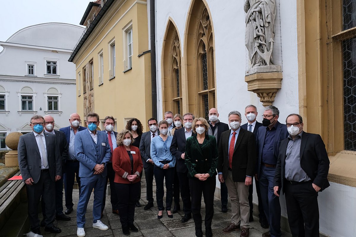 Teilnehmer*innen (v.l.n.r.): Manfred Wendl, Heinz Donhauser, Rüdiger Peters, Dr. Harald Hollnberger, Peter Krase, Annika Wawersig, Prof. Dr. Yurdagül Zopf, Klaus Holetschek MdL, Dr. Sophia Antoniadis, OB Michael Cerny, PD Dr. Carolin Hack, Prof. Dr. Ralf Langejürgen, Sophie Schwab, Prof. Dr. Matthias Beckmann, Dr. Ludwig Fischer von Weikersthal, Dr. Harald Schwartz MdL, Anton Haupenthal, Thorsten Vellguth.