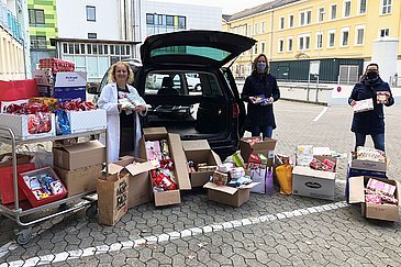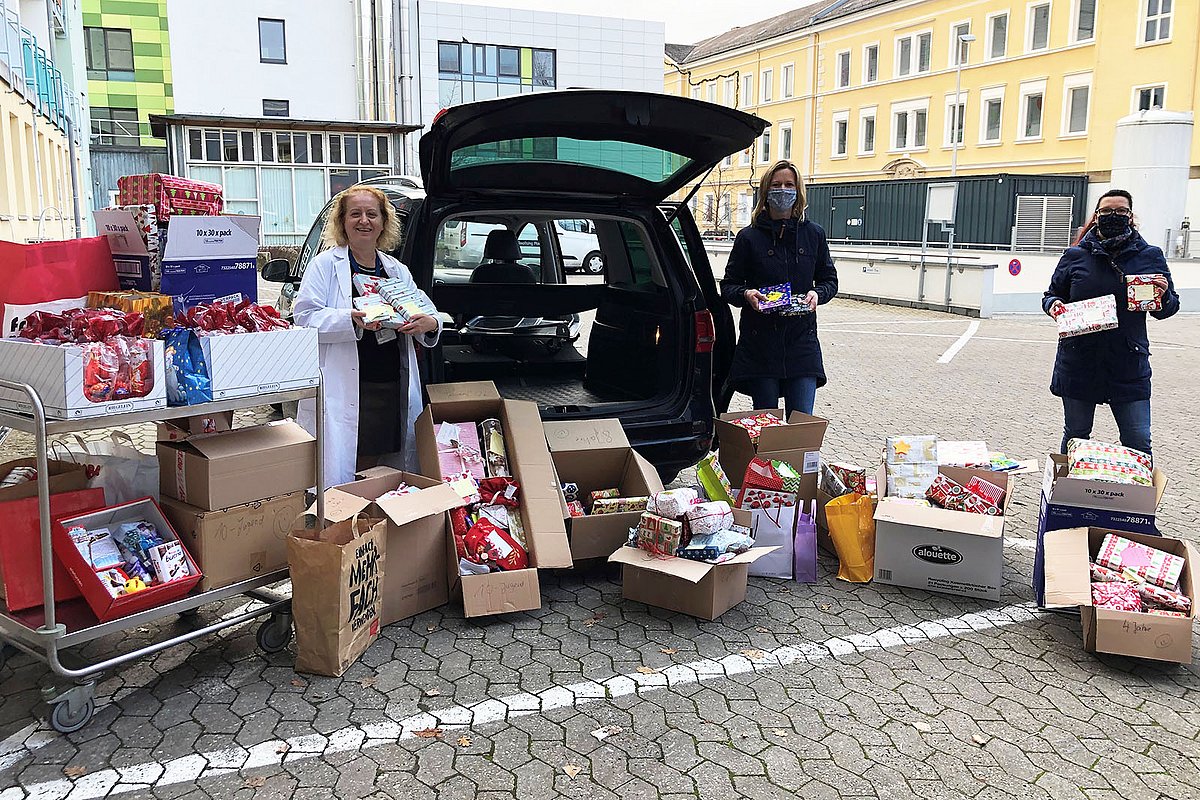 Was klein anfing, zog schnell große Kreise: Carmen Vogel aus Weißenburg entschloss sich, den schwer kranken Kindern und Jugendlichen, die das Kinderpalliativteam des Universitätsklinikums Erlangen betreut, etwas Gutes zu tun und ihnen mit Weihnachtsgeschenken eine Freude zu machen. Ihre Nachbarin Yvonne Grünberg übergab zusammen mit ihrer Freundin Claudia Wenzel stellvertretend die vielen selbst verpackten Geschenkpakete an die Leiterin des Kinderpalliativteams, Dr. Chara Gravou-Apostolatou. Auch die Selbsthilfegruppe krebskranker Kinder Amberg-Sulzbach e. V. stiftete zahlreiche Geschenke für die jungen Patienten und ging bei den Weihnachtseinkäufen liebevoll auf die Wünsche der Kinder und Jugendlichen ein.