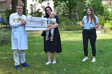Von den 5.000 Euro soll beispielsweise der Elternaufenthaltsraum mit neuen Utensilien ausgestattet werden. „Das reicht von Kochgeschirr bis hin zum Sofa“, zählte Prof. Dittrich auf. „Aber auch einen Dolmetscherdienst für nicht deutschsprachige Mütter und Väter und Ähnliches können wir dank dieser tollen Spende ermöglichen. Wir freuen uns sehr, dass wir unseren Patientinnen und Patienten sowie deren Eltern so den Aufenthalt bei uns ein wenig angenehmer gestalten können.“
